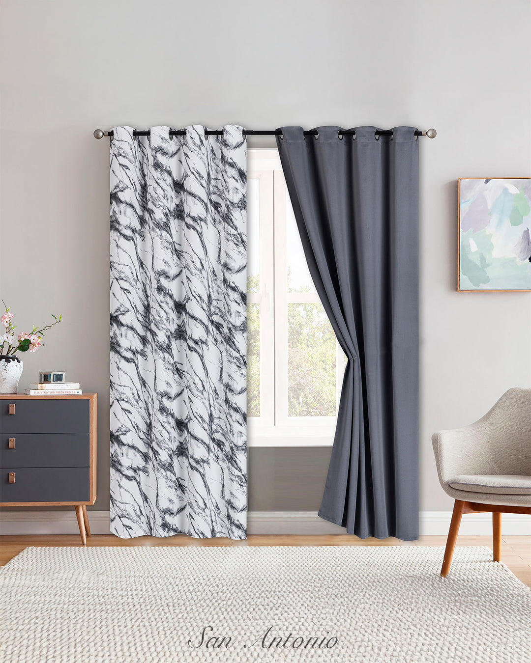 Nuestras cortinas blackout dúocombinan diseño y funcionalidad en una sola pieza. Están confeccionadas con dos hojas: una ESTAMPADA, que aporta estilo y personalidad al ambiente, y otra LISA, ideal para lograr un acabado elegante y equilibrado